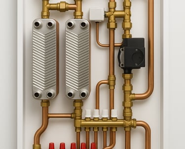Válvulas (termostáticas, de equilibrado diferencial, antirretorno, de seguridad): Aseguran la correcta mezcla, control y protección del sistema.