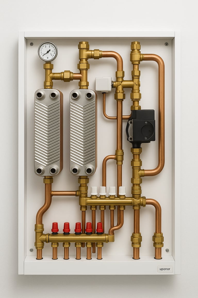 El sistema Uponor Aqua Port y su variante Combi Port son estaciones de intercambio de energía diseñadas para producir de forma instantánea Agua Caliente Sanitaria (ACS) y calefacción sin necesidad de depósitos tradicionales, reduciendo espacio, riesgo de legionella y pérdidas térmicas.